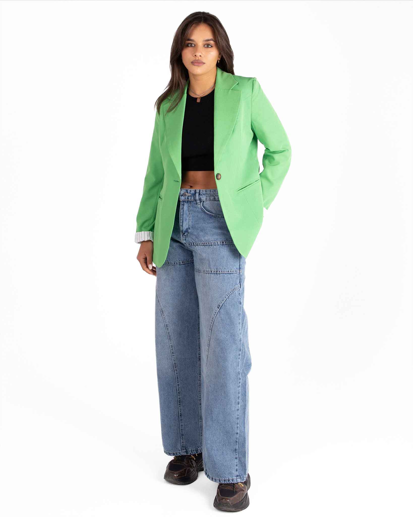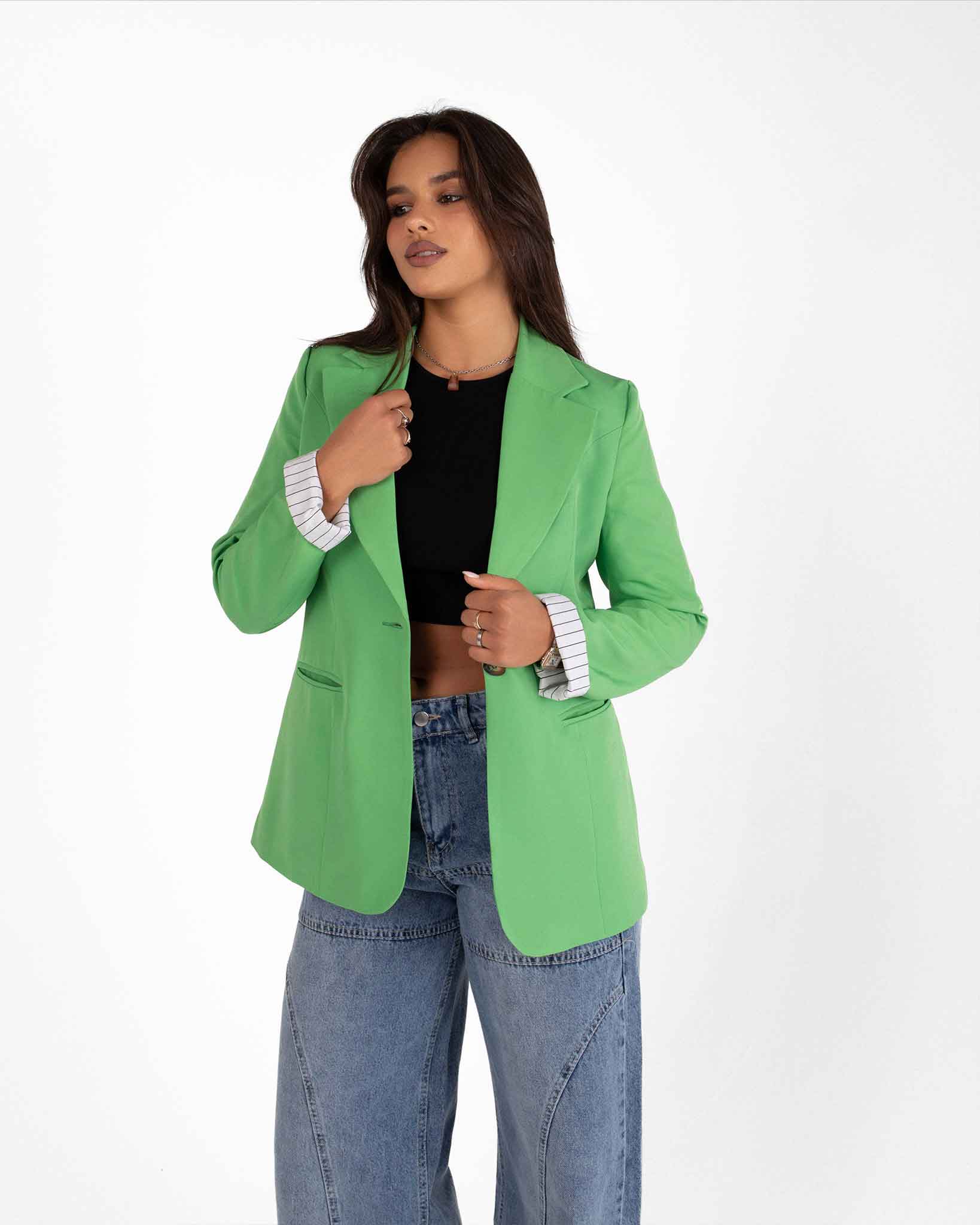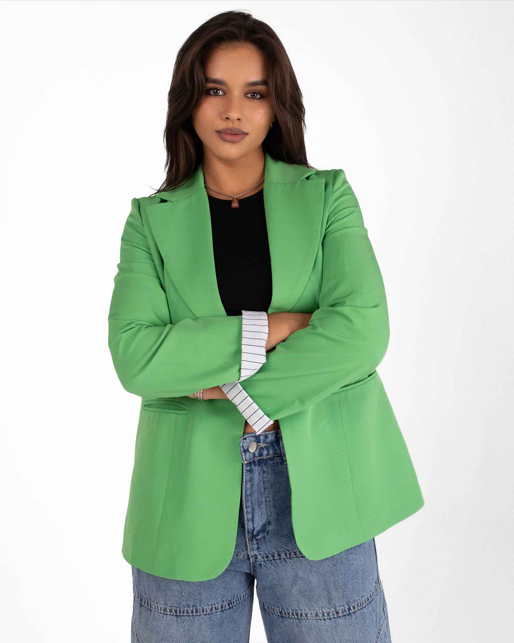Make your presence known with this vibrant green blazer from the ELARA Collection.