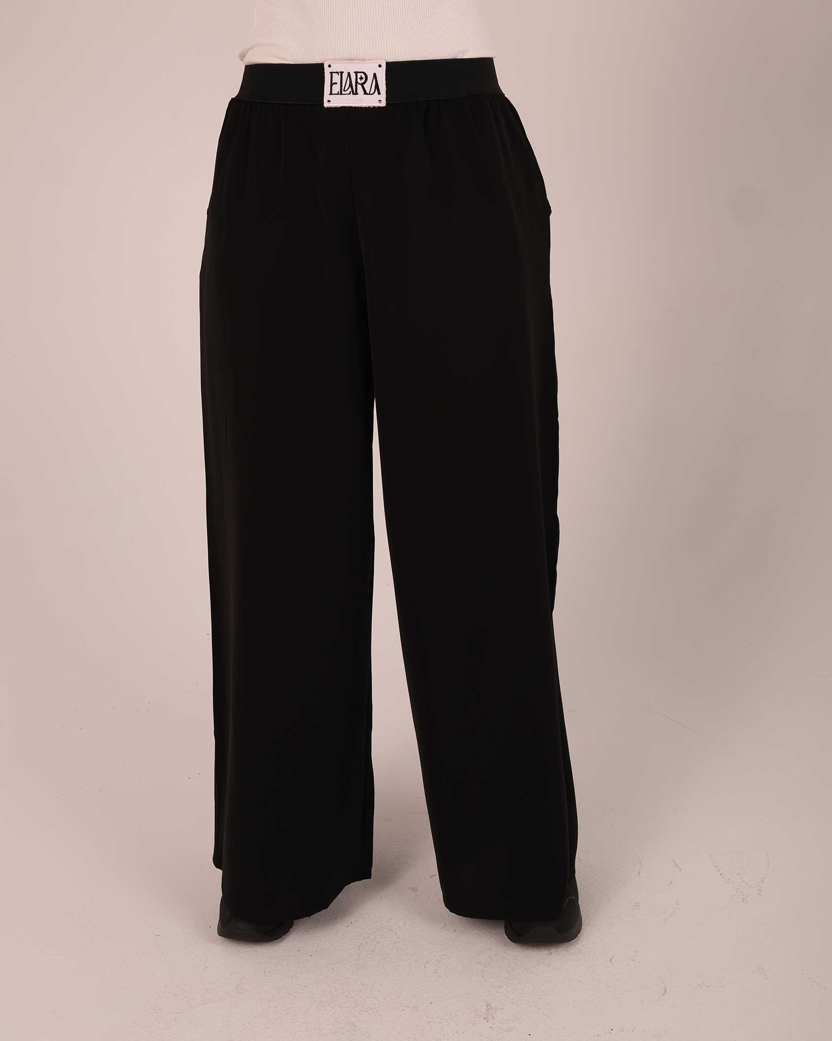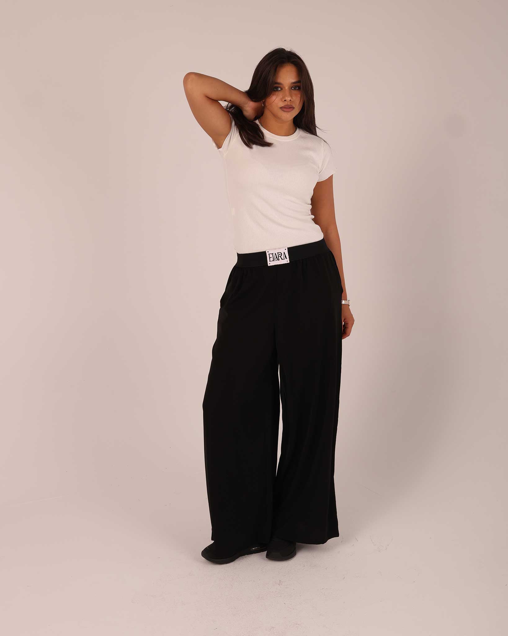 High-waisted wide-leg trousers with a comfy elastic waistband. Available in chic, versatile colors to match your mood. Styled with a sleek black crop top and fresh white kicks — this is your go-to outfit for coffee dates, mall strolls, or late-night hangouts. Effortlessly cool, endlessly Instagrammable.